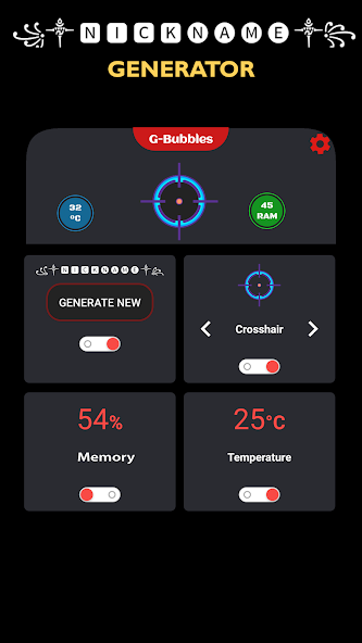 Gamer Bubble vous permet de mettre des bulles de superposition personnalisées sur votre écran de jeu pour obtenir des valeurs utiles de votre appareil lorsque vous devez mesurer les performances de jeu de votre appareil. Vous pouvez également générer des surnoms sympas et les copier pour définir comme surnom sur le jeu que vous jouez!